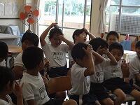 という芳賀さんの問いかけに、1,2年生は慌てておでこをぺたり。