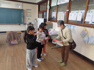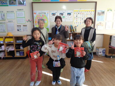 1年生にクリスマスプレゼント 投稿日時 : 12/08 真名子小管理者 12月4日(木)、西方地区内の「茶話サロンなでしこ」の皆さんが来校され、1年生に素敵なクリスマスプレゼントをいただきました 1年生は、突然のプレゼントに大喜びありがとうございました {{options.likeCount}} {{options.likeCount}}
