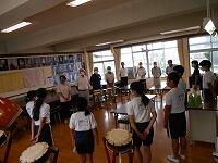 そして早速練習。見よう見まねで太鼓をたたきます。