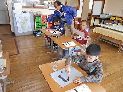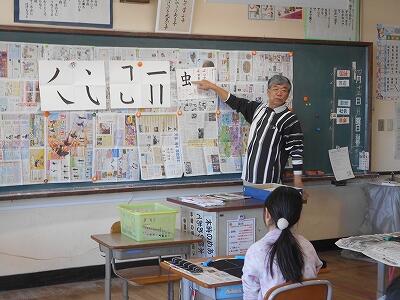 大塚光一先生のご指導で、4年生・3年生の毛筆の授業が行われました。