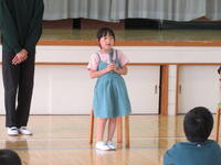 今日は、まず、今年度着任した教職員の新任式を行いました。2名の教職員が着任し、6年生の代表児童から歓迎のことばをいただきました。