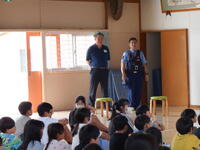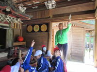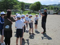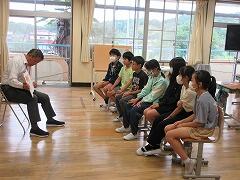 また、クマに出会ってしまったときには、静かに頭を守るダンゴムシのポーズをとるとよいということを教えていただきました。鈴など音が鳴るものを身に付け、クマに存在を知らせることも大切だとのことでした。本校の児童は、ランドセルにクマ鈴をつけ事故防止に努めています。