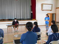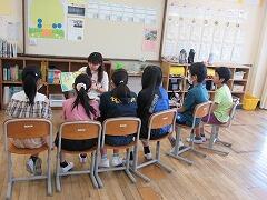 みなさん、やさしく独特の語りで、子ども達は毎回楽しみにしています。あるクラスでは…実際教室に集まり、担任の先生が読み聞かせを行い、ゆめの会の方達に来ていただいた時のご挨拶の練習などしているクラスがありました。立派ですね