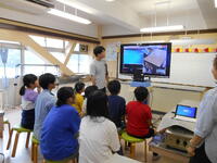 外国語科の授業の一環として実施し、インターネットのオンライン会議システムでお互いの学校をつなぎ、それぞれの地域について英語で紹介し合いました。
