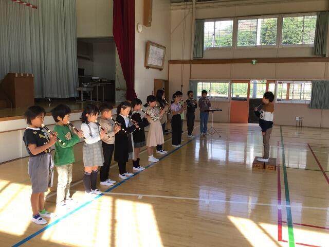 10月23日の真名子っ子タイムに音楽集会を行いました。今回は3・4年生が発表で「パフ」を演奏しました。この日に向けて、一生懸命に練習を重ねてきました。リコーダーとピアノと鉄琴とキーボード(今日は残念ながらお休みでしたが、みんなで心を一つに演奏しました。)そして、指揮者と全員の音と心を一つにして精一杯演奏することができました。鑑賞する全校生の態度もすばらしく、発表後には良いところをたくさん話してくれて、3・4年生も大満足でした。音楽はみんなの心を一つにしてくれる素晴らしいものだと改めて感じることができる素敵な集会となりました。