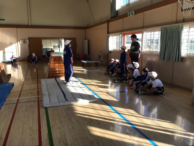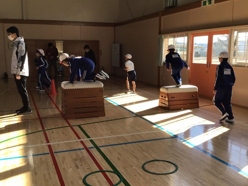 1月25日に,3・4年生は体育の授業で跳び箱発表会を行いました。これまで7時間,体育の授業で跳び箱に取り組み,「開脚跳び」「台上前転」「かかえこみ跳び」の3種の技に挑戦してきました。初めは「できない。」「難しい。」などと後ろ向きな声も多く聞こえましたが,回数を重ねるごとに友達の励ましも受けながら技術が上達し自信を付けていきました。