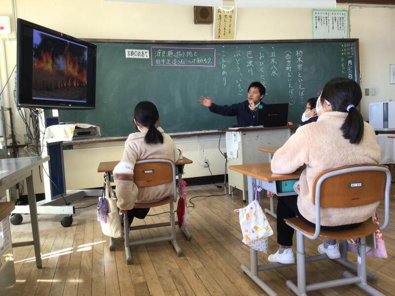 1月26日に渡良瀬遊水地課の方に来校していただき,4年生が出前講座を受講しました。内容は「渡良瀬遊水地のしくみや歴史について」です。写真やスライドを用いながら,子どもたちにとても分かりやすく渡良瀬遊水地の様子や利用の仕方について教えてくださいました。渡良瀬遊水地自体をあまり知らない児童も多かったり,遊水地は観光地としかとらえていない児童も多かったのですが,授業後には,私たちの暮らしを支えてくれていることに気づくことがでいました。