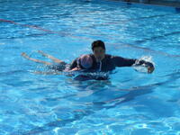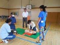 前半は、イオンスポーツクラブ3FIT栃木店のインストラクターさんを講師にお招きして、水難事故と救助方法について実習しました。児童のプール事故とその防止について、御経験されたことを交えながら具体的に御講話いただき実りある研修会となりました。