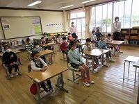 子どもたちは、登校班に分かれ各教室で待機しています。