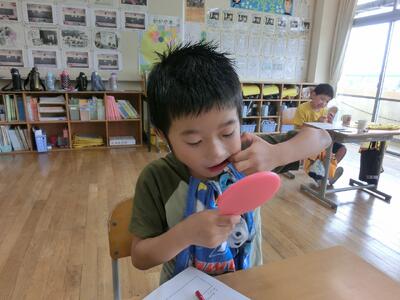 第二次成長期に分泌されるホルモンの影響で、高学年は歯肉炎になりやすいといわれます。今回は、手鏡持参で登校してもらい、歯肉のセルフチェックを行いました。幸い、歯肉炎傾向の児童はいませんでしたが、毎日の丁寧なブラッシングが欠かせないことはしっかりと伝わったようです。これからも口腔衛生に努めましょう。