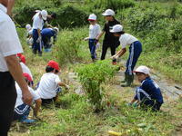 農園作業(協働) 投稿日時 : 2024/09/11 真名子小管理者 9月11日(水)、真名子っ子タイムの時間に全校で農園の除草作業を行いました。 農園では、サツマイモやトウモロコシ、そして、2年生が生活科でピーマンやオクラ、カボチャ、スイカなどを育てていました。 サツマイモ以外の作物は収穫が終わり、10月21日(月)に実施予定のサツマイモ収穫に向け、除草作業を行いました。 よく働く真名子っ子!すっかりきれいになりました。サツマイモの収穫も楽しみです Tweet {{options.likeCount}} {{options.likeCount}}