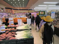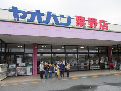 次にヤオハン粟野店さんを見学させていただきました。働く人たちの仕事の工夫や努力について学びました。スーパーには八百屋さん、魚屋さん、肉屋さん、お惣菜屋さんなどがひとつになっているお店です。それぞれのバックヤードを見学させていただきました。