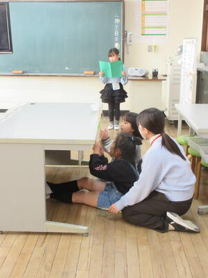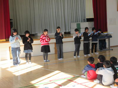 1年生「生活科で学んだこと」、「もうすぐ2ねんせい」、音読劇、鍵盤ハーモニカの演奏