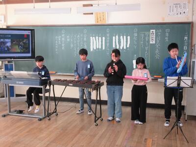 4年生「福祉について発表しよう」、「宿泊学習について発表しよう」、合奏、歌