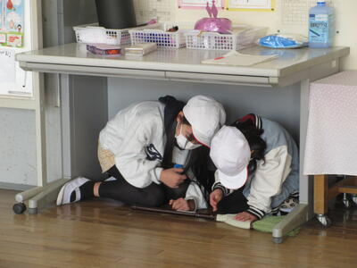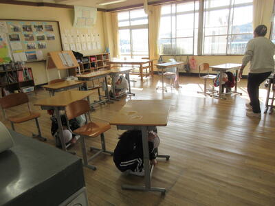 戸惑う児童もいましたが、上級生が声を掛け自分たちで身を守る行動ができました。