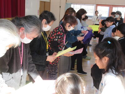 最後に、子どもたちが心を込めて書いたお礼の手紙をボランティアの皆さまへお渡ししました。受け取ったボランティアの皆さまの笑顔