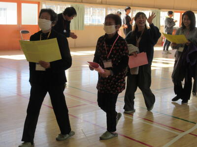 その後、「猛獣狩りにいこうよ」を1回だけ行いました。司会者の「いつもありがとう」の掛け声に合わせて、文字数にちなんだ8人グループ