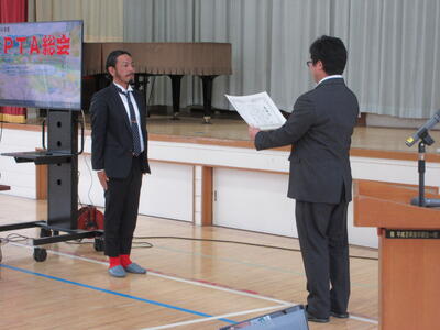 本校のPTA総会は、対面式で行っています。PTA会長さんの御挨拶の中で「今は、PTA総会を書面で済ませてしまう学校が増えていますが、本校は学校を愛している保護者が多いので、対面で行ってもこれだけの方が集まっていただけます。」と、感謝の言葉を述べられていました。そして、これからも子ども達が楽しめるよう楽しい活動を行っていきましょうと、学校にとっても力強いお言葉がありました