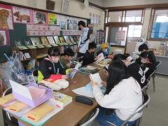 1時間目に、5年生が十進分類法の勉強で図書室を利用しました。