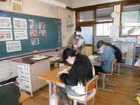 最初に、各学年の授業の様子を参観いただきました。「どの学年も落ち着いており、先生と子どもたちとの関係も良さそうですね。」という御感想をいただきました。