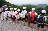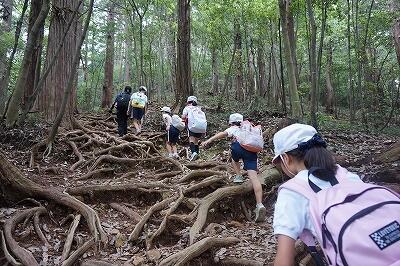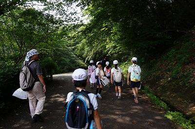 見学を終えたら、謙信平に向かって山道を歩きます。