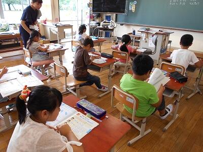 このとき、1~3年生は「夏休みのワーク」で1学期の復習。