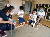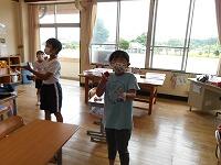 この後は、真名子っ子班に分かれて、ジェスチャーゲームや宝さがしゲームを行いました。ジェスチャーゲームでは、ちょっと難しいお題もあったようです。宝さがしゲームでは、みんな「どこにあるのかな?」「どこに隠そうかな?」ととってもわくわくしながら楽しむことができました。