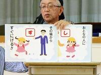 大きな声で助けを呼ぶこと、逃げるときにはランドセルを置いてでも自分の命を守りましょう。