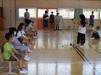天気が悪かったので体育館でプール開き集会を行いました。