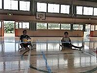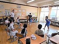 29日(月)6校時、4年生は総合的な学習の時間に福祉について学ぶ一環として、パラリンピック競技のシッティングバレーボールに挑戦しました。この競技は、基本的におしりを床から離してはいけないので、おしりを床につけたまま移動する練習をした後、担任も入って2対2のチームでゲームをしました。ルールは少し簡単にして、1回キャッチしてOKにしました。3回以内でボールを返せば良いのですが、動きづらいためみんなボールに触るのに必死で、なかなかラリーは難しかったです。それでも白熱したゲームとなり、どこに行けば相手からのボールを受けやすいか、どこに打てば相手が取りにくいかそれぞれが考えて実践していました。初めてでも、パラリンピックスポーツの楽しさを知ることができました。障がいのある人については、できないことに頭がいきがちですが、工夫すれば「できる」ということ、楽しめるということが分かりました。