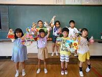 教室に戻った1年生。みんなからのメッセージを読んだり、リースを飾ってるおり紙を見て、「これバラだ!」「これはひこうき」などうれしそうにしていました!