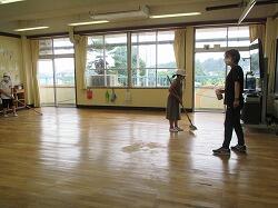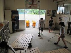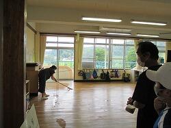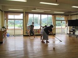 最終日の今日は、教室のワックスがけや体育館、昇降口の清掃を行いました。