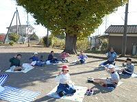 毎日寒い日が続いていましたが、今日の天気は晴れ!風もほとんどなく、外で給食を食べるには、ちょうど良い日となりました。