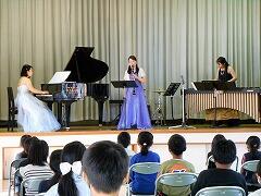 「熊蜂の飛行」や「情熱大陸」「君をのせて」など、子どもたちにもなじみのある曲が演奏されたほか、校歌を一緒に歌ったり、リズム遊びをしたりして、楽しい時間を過ごしました。