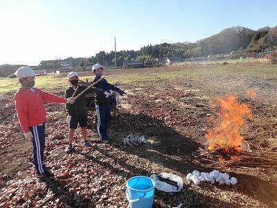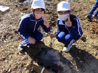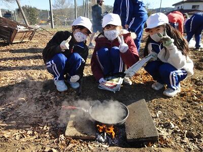 「本当に塩ができるのかな」と不安な様子…。火が消えないように、枝を入れたり仰いだり、子どもたちは大忙しです。