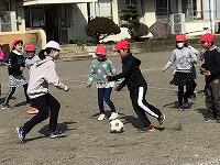 それぞれの学年の担任も6年生チームに入り、サッカーをしました。