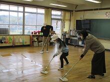 最終日、5・6年生は教室のワックスがけ、1~4年生は体育館掃除を行いました。