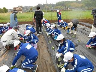 ボランティアの皆さんにを教えていただきながら、苗を植えていきます。
