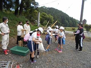 子ども達は、真名子っ子班ごとに真名子の名所を巡りながら