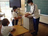 マスコット使って人形劇風にビデオをとり全校児童にみてもらい