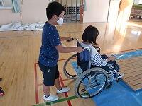 自分で車いすを操作をしたり、車いすの友達の段差越えを介助したりしました。