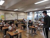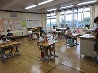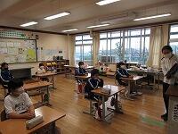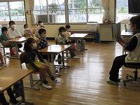 感染予防のため、しばらくお休みしていた「ゆめの会」の皆さんによる読み聞かせがスタートしました。2年生の代表児童による号令できちんとご挨拶!! 自己紹介をしていただき『みどりのこいのぼり』という絵本を読み聞かせしていただきました。ゆっくりわかりやすい語りで、子供達は話にひきこまれていました。