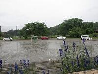 ゲリラ豪雨を認知。校長に報告し指示を受けます。→引き渡しの対応を担任に伝達し準備します。