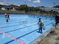 プール内はもちろんのこと、プールサイドの除草・シャワー・足洗い場・更衣室等、みなさんで分担してピカピカにしていただき本当にありがとうございました。