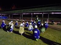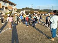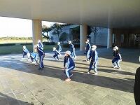朝食前に体操を行い、その後メイン広場で写真を撮りました。