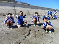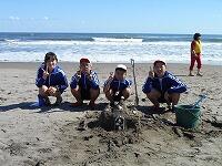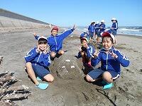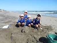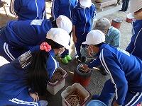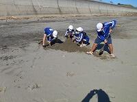 貝殻キーホルダーづくりの様子です。なかなか穴があかず、苦労しました。