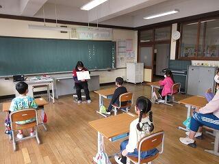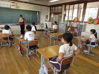 お昼休みには、各学年代表の児童による感想文の発表が行われています。とても上手に放送できています。