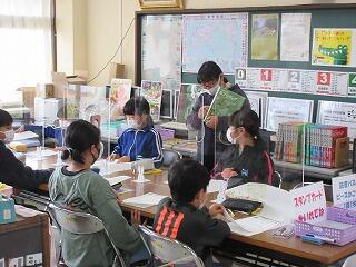 4年生が、最新版ポプラディアを活用し調べ学習で図書室を利用しました。