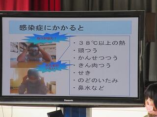 いよいよ12月。寒さも本番です。健康集会の発表を生かし、真名子地区を感染症から守りましょう。