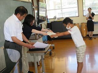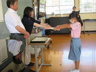 たくさんの児童が、名前を呼ばれると元気に返事をして立ち、代表の児童が校長先生から賞状を受け取っていました。